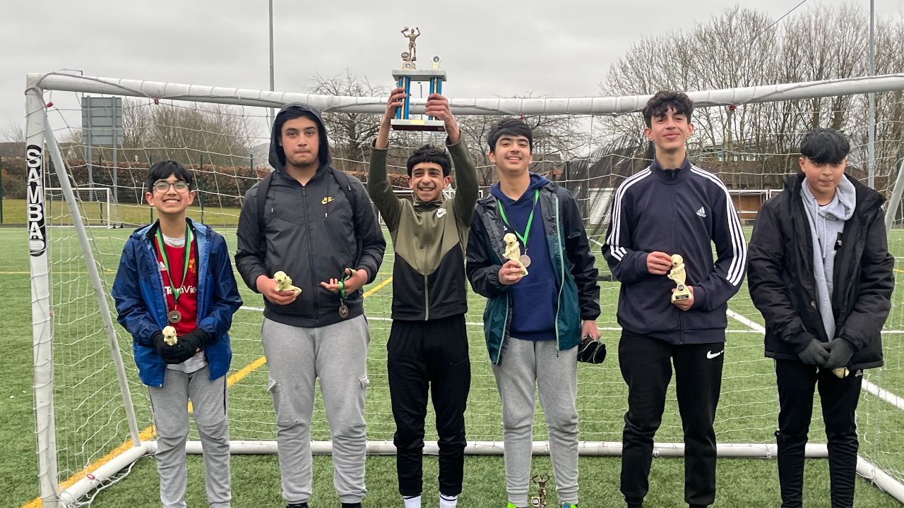 The Al-Baqir Centre under-16s football team lifting their trophy as the winning team for their age category!